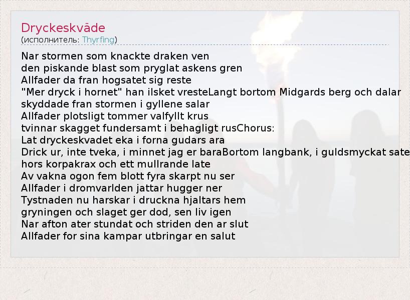 А как ты думаешь, о чем песня "Dryckeskväde" ?