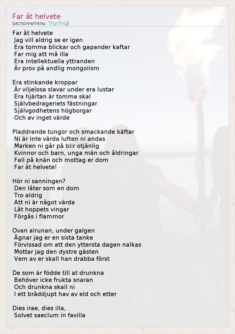 А как ты думаешь, о чем песня "Far åt helvete" ?