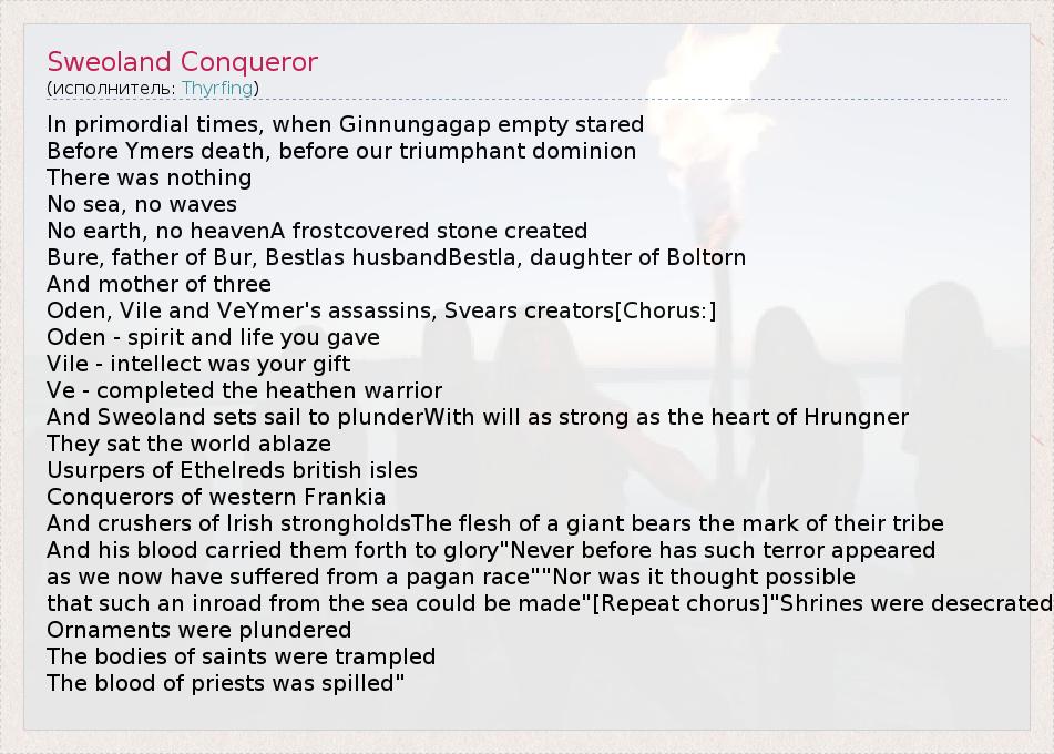 А как ты думаешь, о чем песня "Sweoland Conqueror" ?