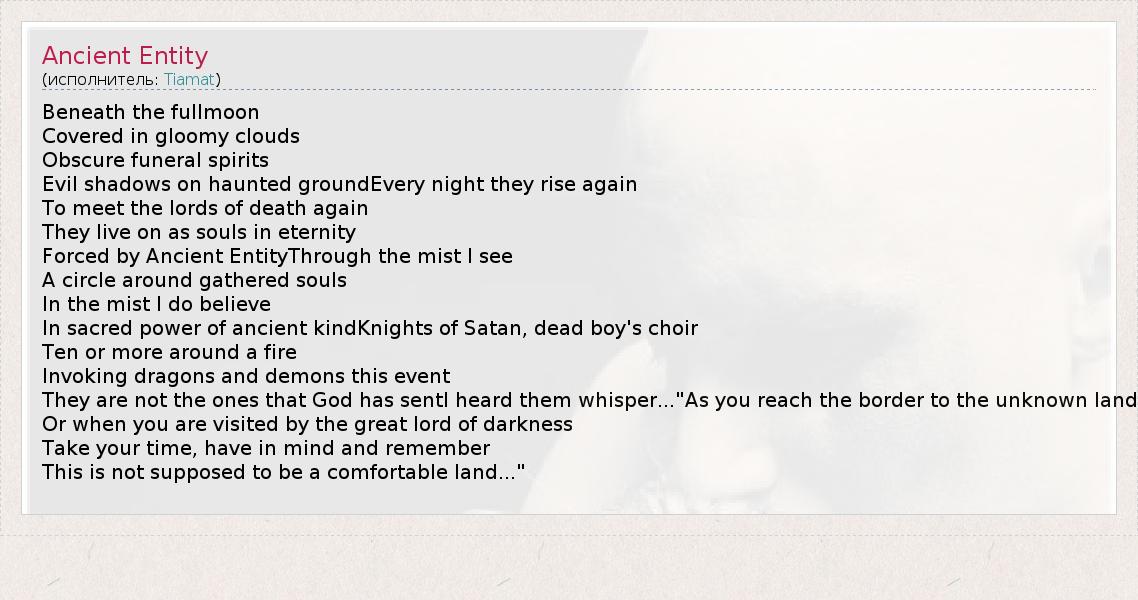 А как ты думаешь, о чем песня "Ancient Entity" ?