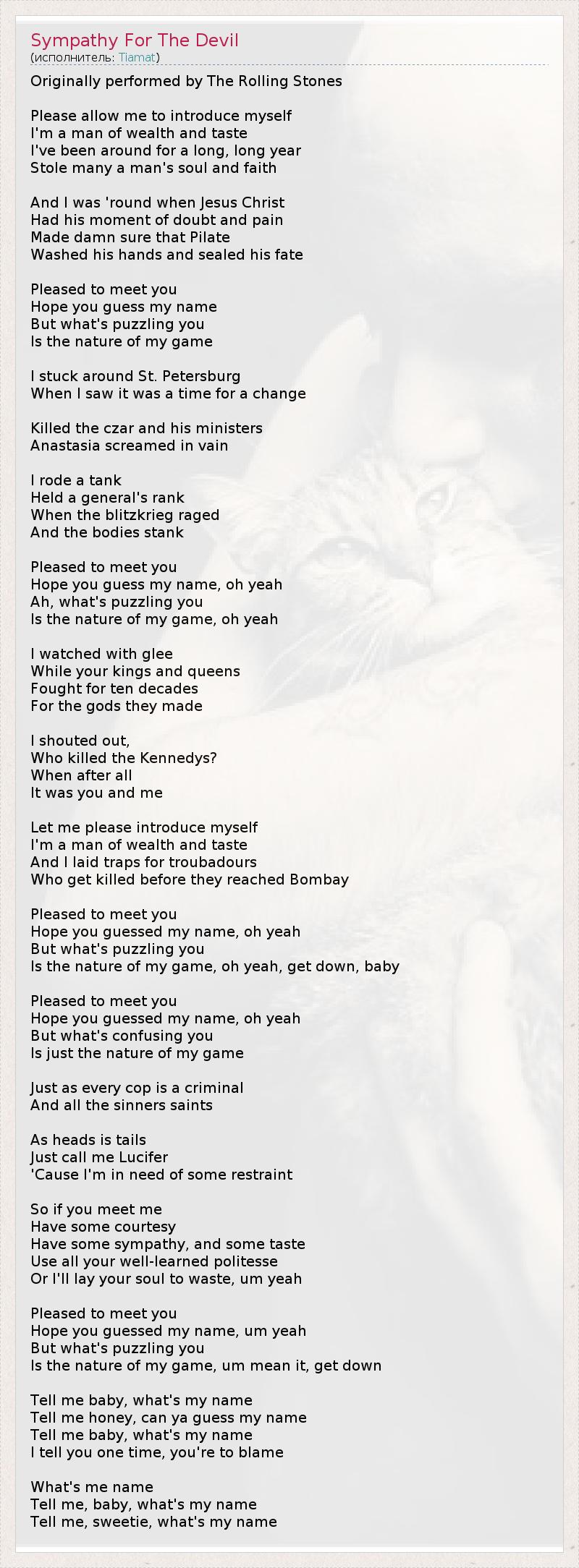 А как ты думаешь, о чем песня "Sympathy For The Devil" ?
