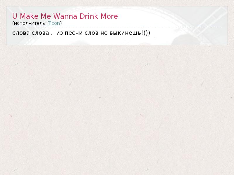 А как ты думаешь, о чем песня "U Make Me Wanna Drink More" ?