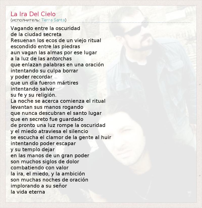 А как ты думаешь, о чем песня "La Ira Del Cielo" ?