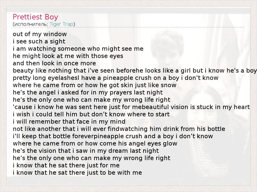 А как ты думаешь, о чем песня "Prettiest Boy" ?