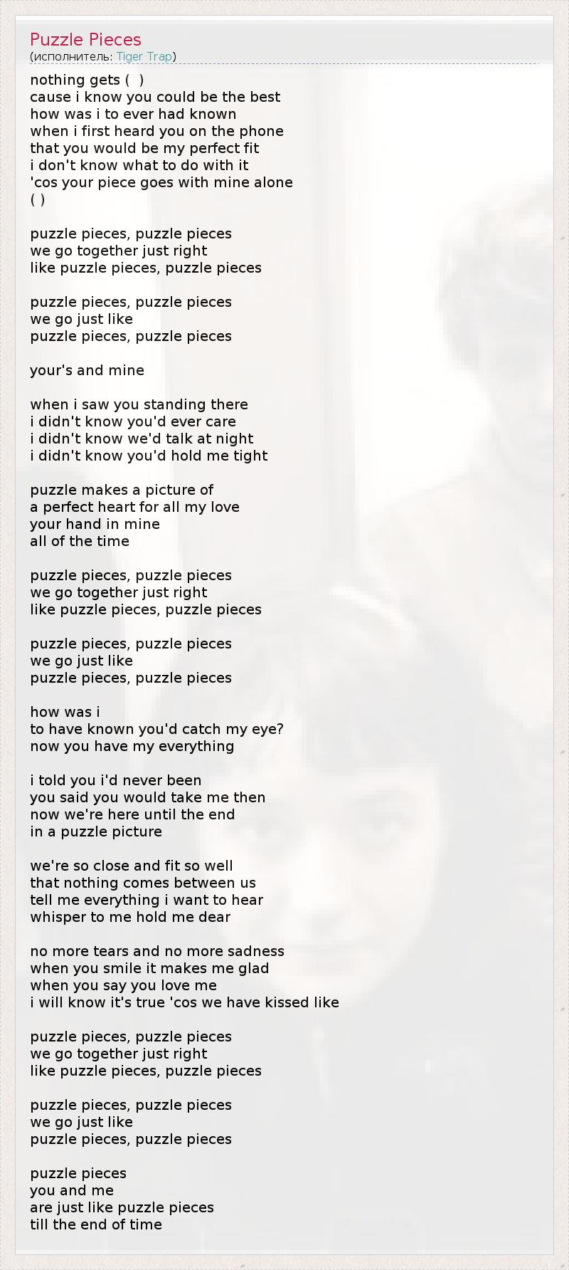 А как ты думаешь, о чем песня "Puzzle Pieces" ?