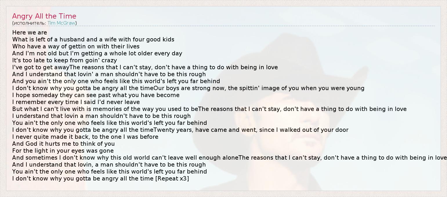 А как ты думаешь, о чем песня "Angry All the Time" ?
