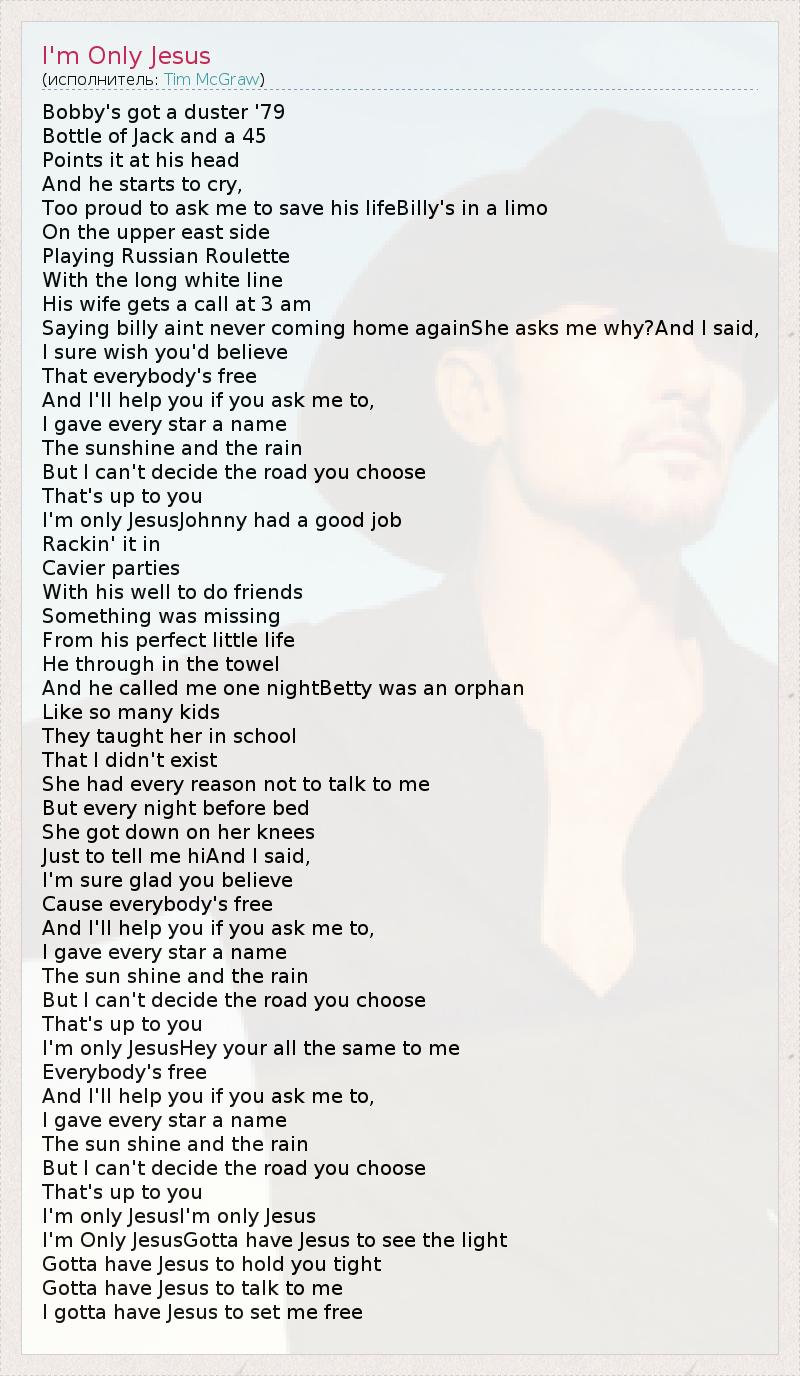 А как ты думаешь, о чем песня "I'm Only Jesus" ?
