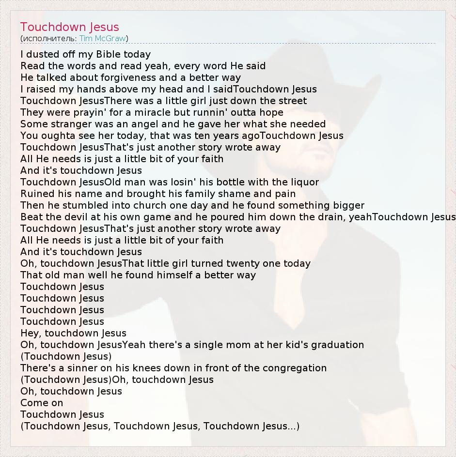 А как ты думаешь, о чем песня "Touchdown Jesus" ?