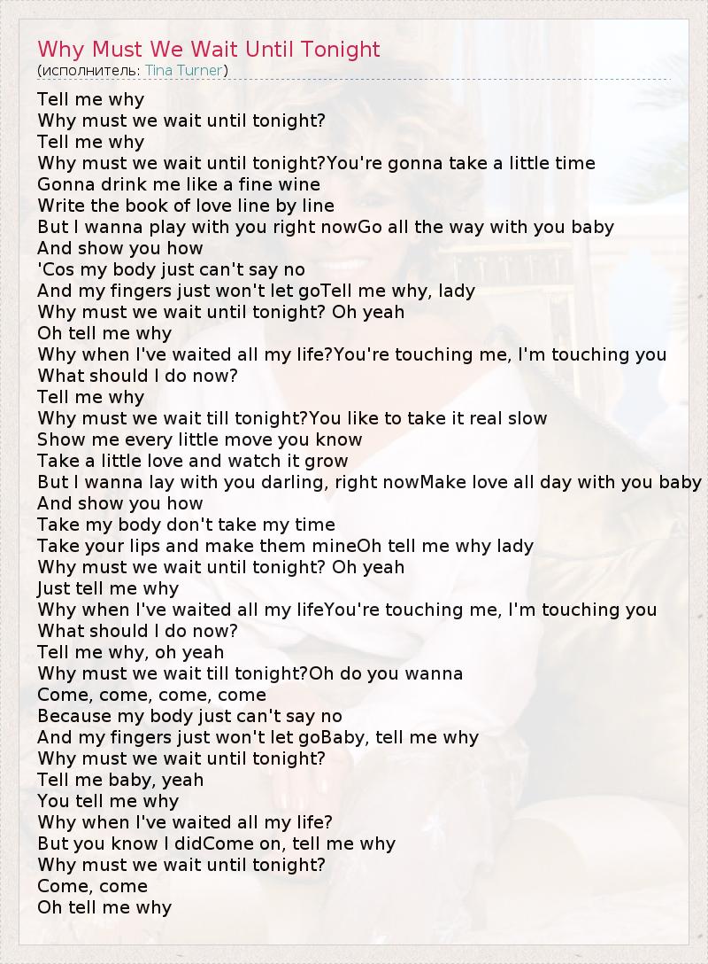 А как ты думаешь, о чем песня "Why Must We Wait Until Tonight" ?