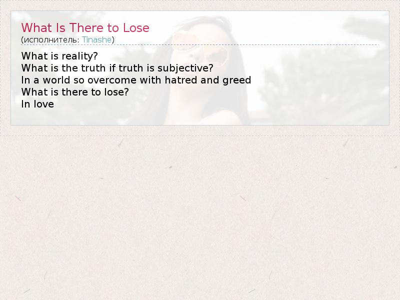 А как ты думаешь, о чем песня "What Is There to Lose" ?