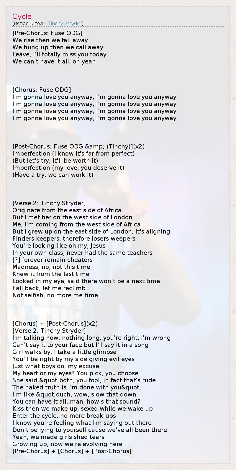 [Post-Chorus: Fuse ODG & (Tinchy)](x2)