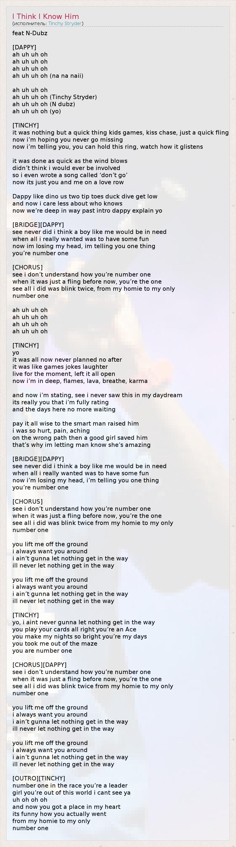 А как ты думаешь, о чем песня "I Think I Know Him" ?
