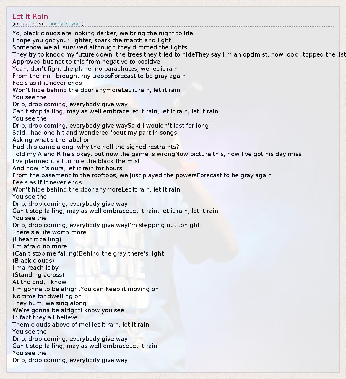 А как ты думаешь, о чем песня "Let It Rain" ?