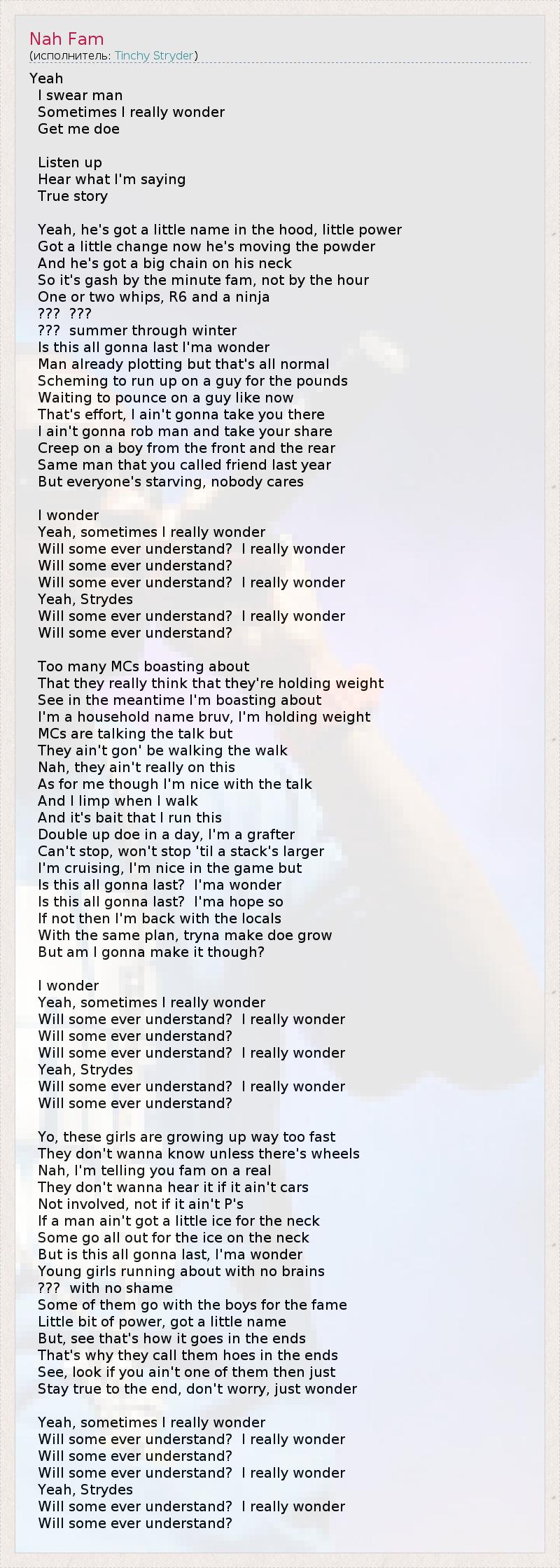 А как ты думаешь, о чем песня "Nah Fam" ?