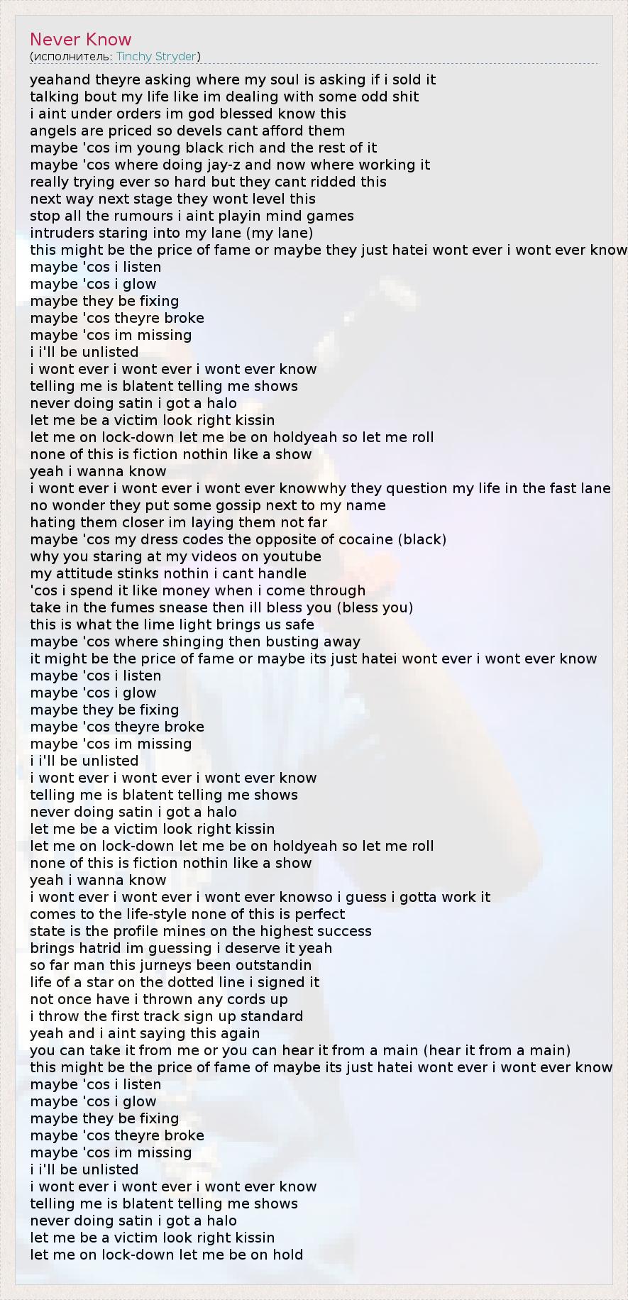 i wont ever i wont ever i wont ever know