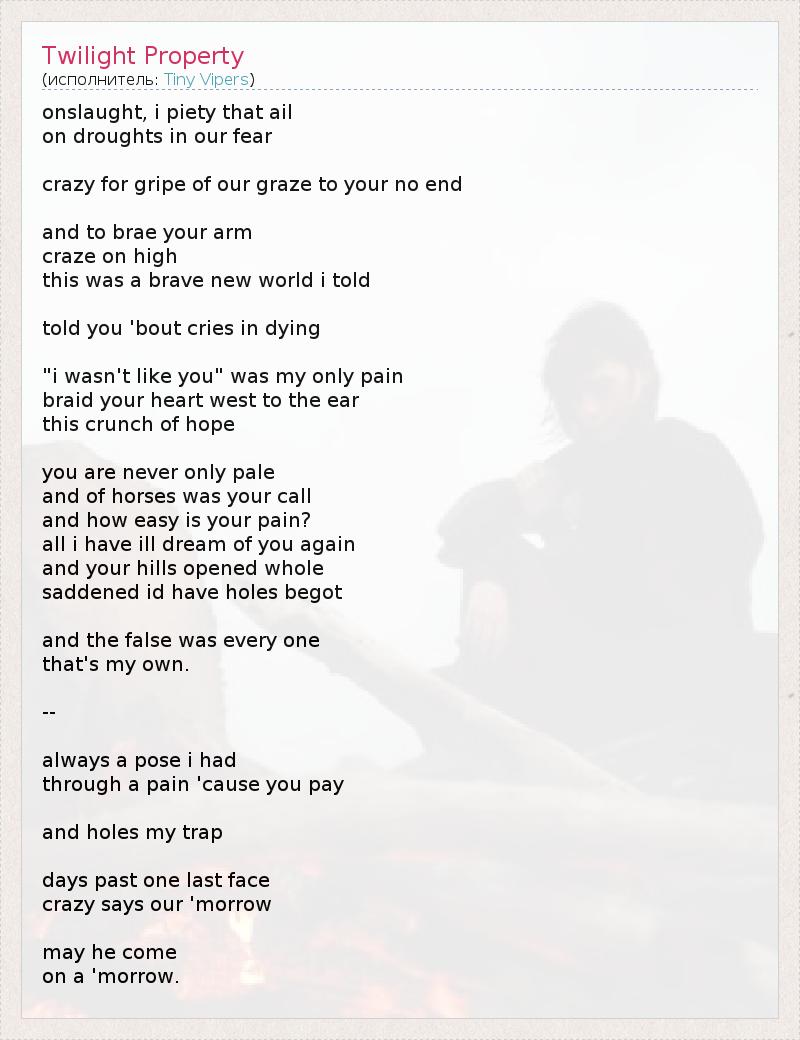 А как ты думаешь, о чем песня "Twilight Property" ?