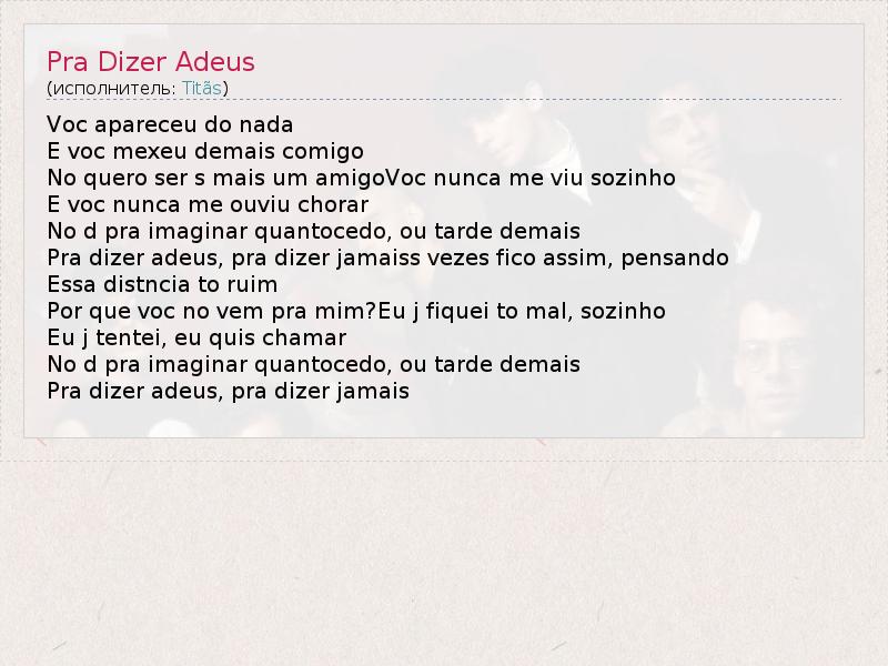 А как ты думаешь, о чем песня "Pra Dizer Adeus" ?