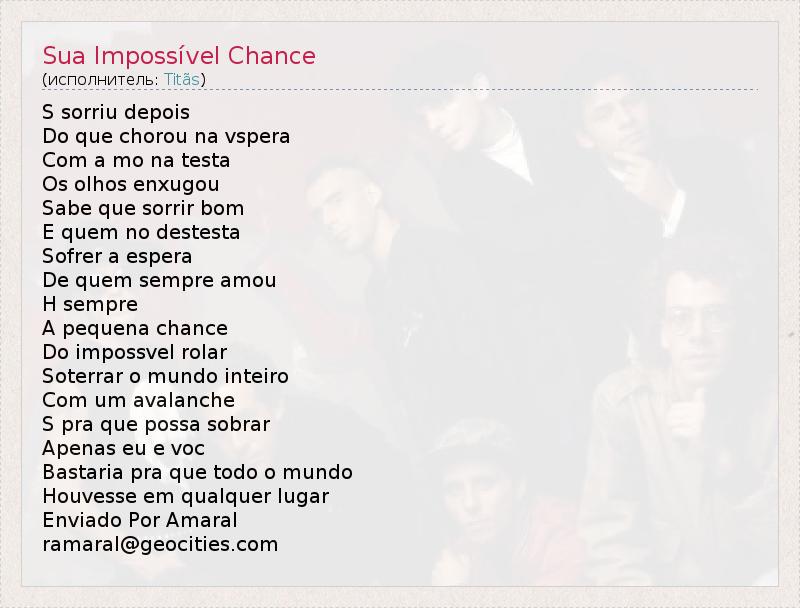 А как ты думаешь, о чем песня "Sua Impossível Chance" ?