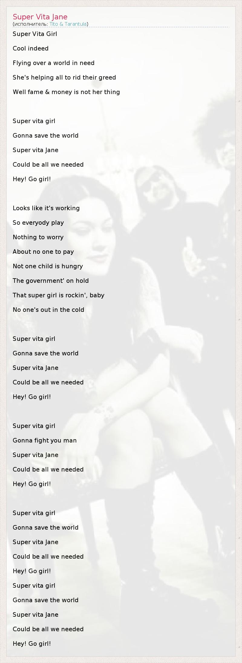 А как ты думаешь, о чем песня "Super Vita Jane" ?