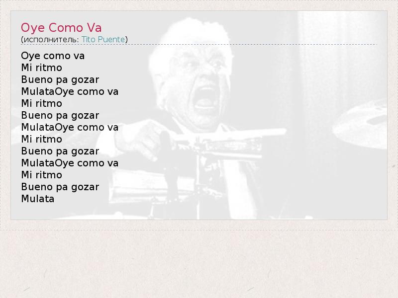 Oye como va Mi ritmo Bueno pa gozar MulataOye como va Mi ritmo Bueno pa gozar MulataOye como va Mi ritmo Bueno pa gozar MulataOye como va Mi ritmo Bueno pa gozar Mulata
