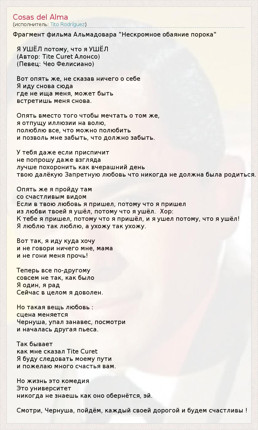 из любви твоей я ушёл, потому что я ушёл.  Хор: