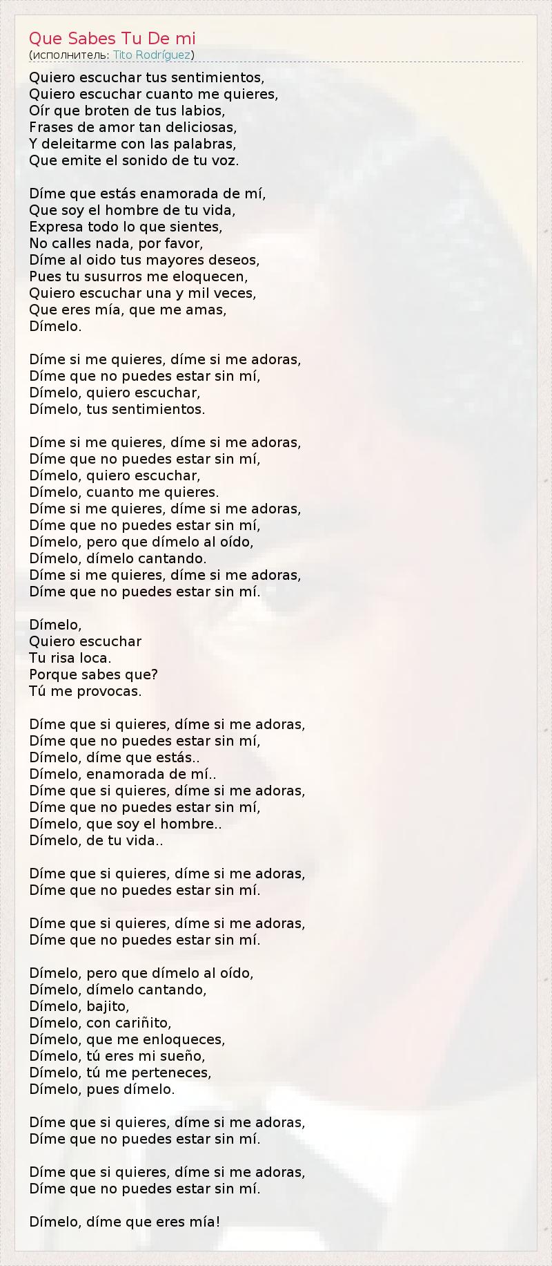 А как ты думаешь, о чем песня "Que Sabes Tu De mi" ?
