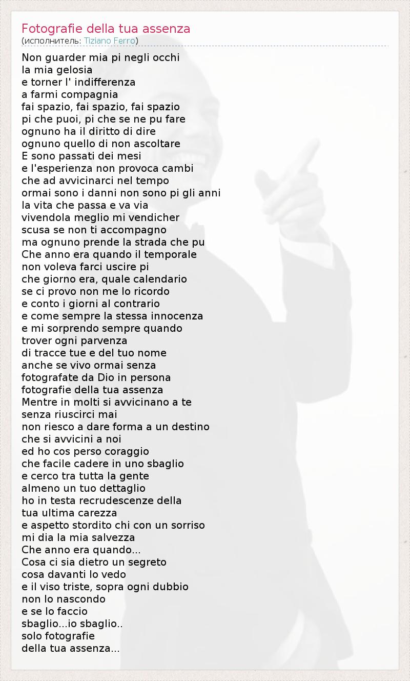 ГлавнаяИсполнителиTiziano FerroFotografie della tua assenza