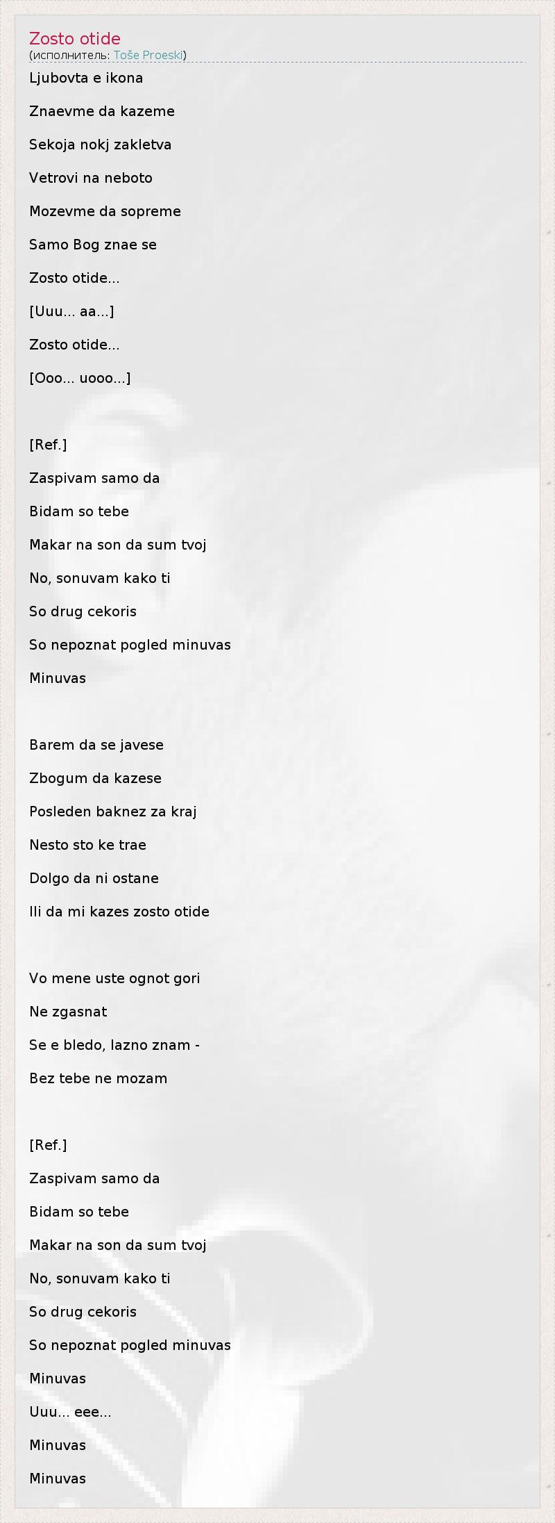 А как ты думаешь, о чем песня "Zosto otide" ?