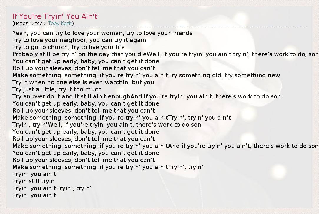 А как ты думаешь, о чем песня "If You're Tryin' You Ain't" ?