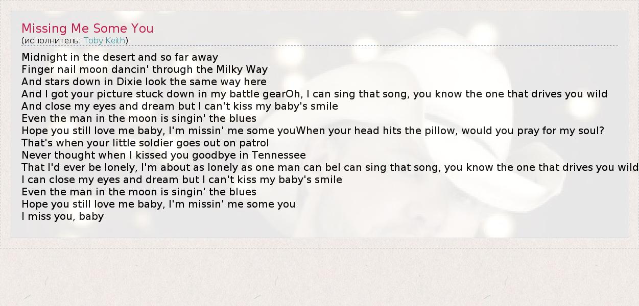 А как ты думаешь, о чем песня "Missing Me Some You" ?