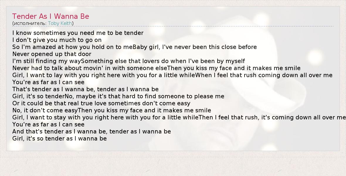 А как ты думаешь, о чем песня "Tender As I Wanna Be" ?