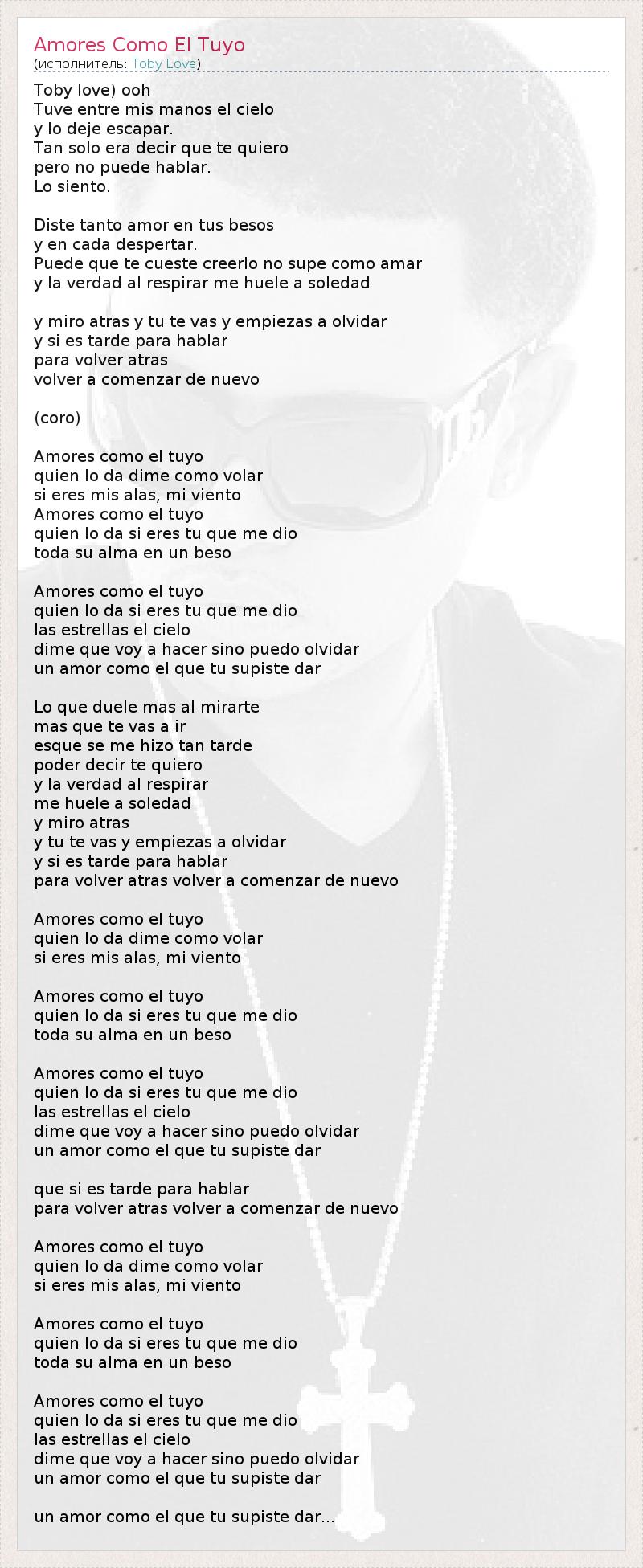 А как ты думаешь, о чем песня "Amores Como El Tuyo" ?