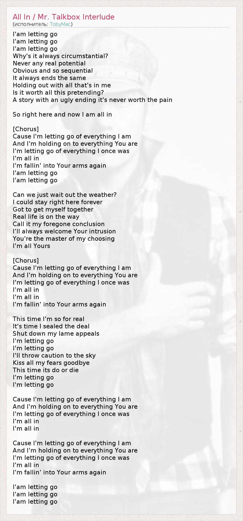 ГлавнаяИсполнителиTobyMacAll In / Mr. Talkbox Interlude