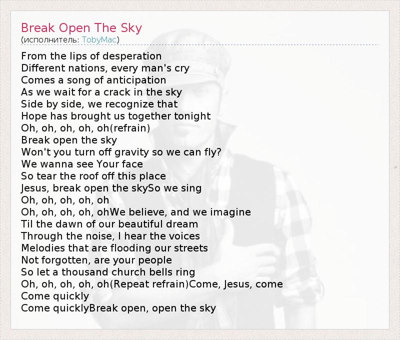 А как ты думаешь, о чем песня "Break Open The Sky" ?