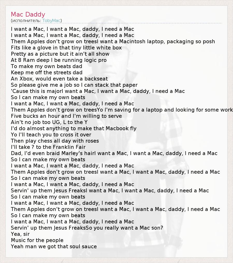 'Cause this is majorI want a Mac, I want a Mac, daddy, I need a Mac
