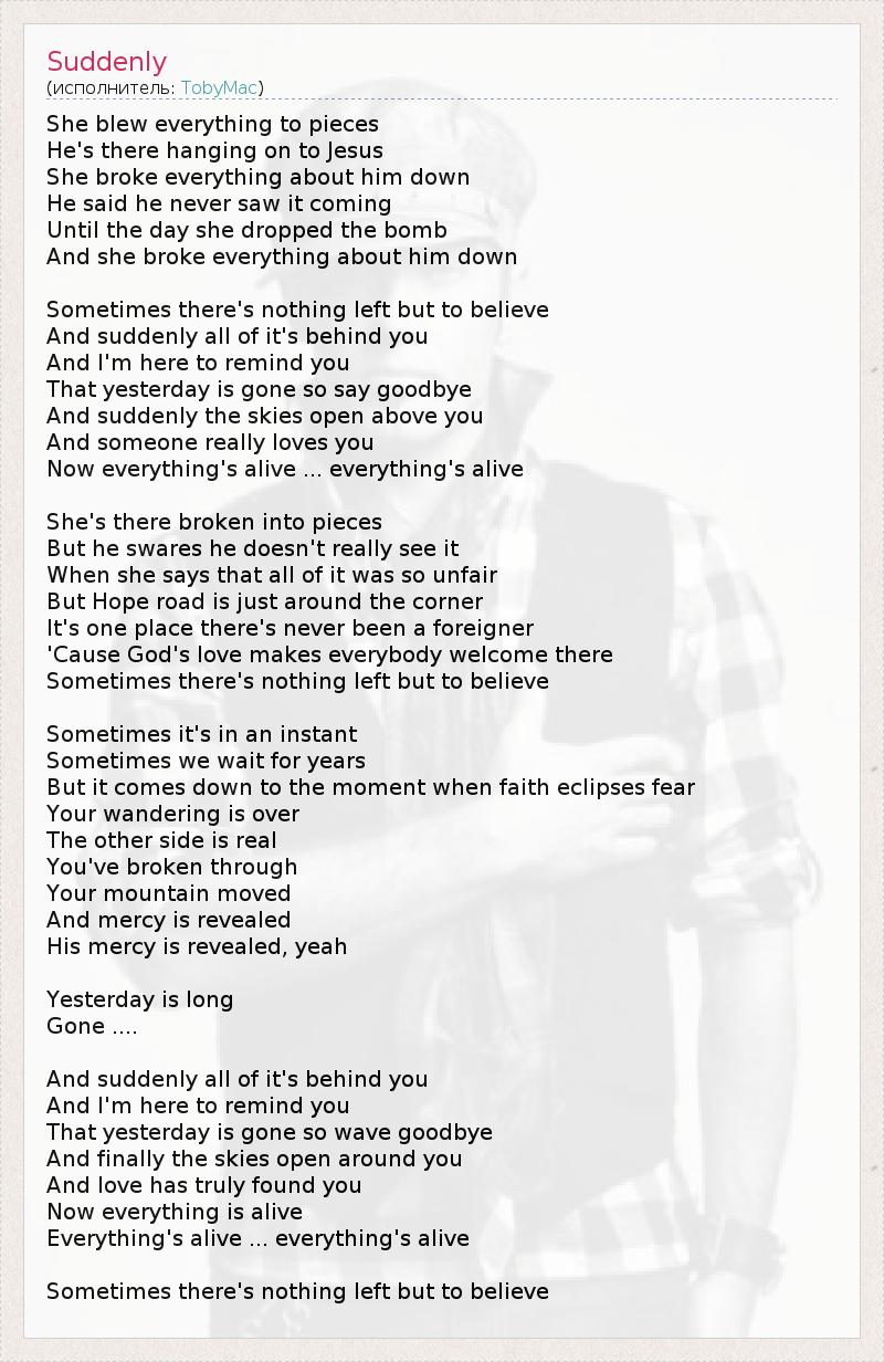 Это интересно:“Я стараюсь писать социально полезные песни, которые заставляют людей задумываться” (Тоби Мак).Тоби Мак родился 22 октября в 1964 году в Арлингтоне (штат Виржиния). Полное имя Тоби Мака – Тобиас Кевин Майкл МакКен.В школе Тоби слушал много современной музыки, в частности, Run’DMC, U2 и The Clash, но хип-хоп и рэп его интересовали наиболее всех жанров. Но, именно, полное отсутствие хип-хоп и... продолжение
