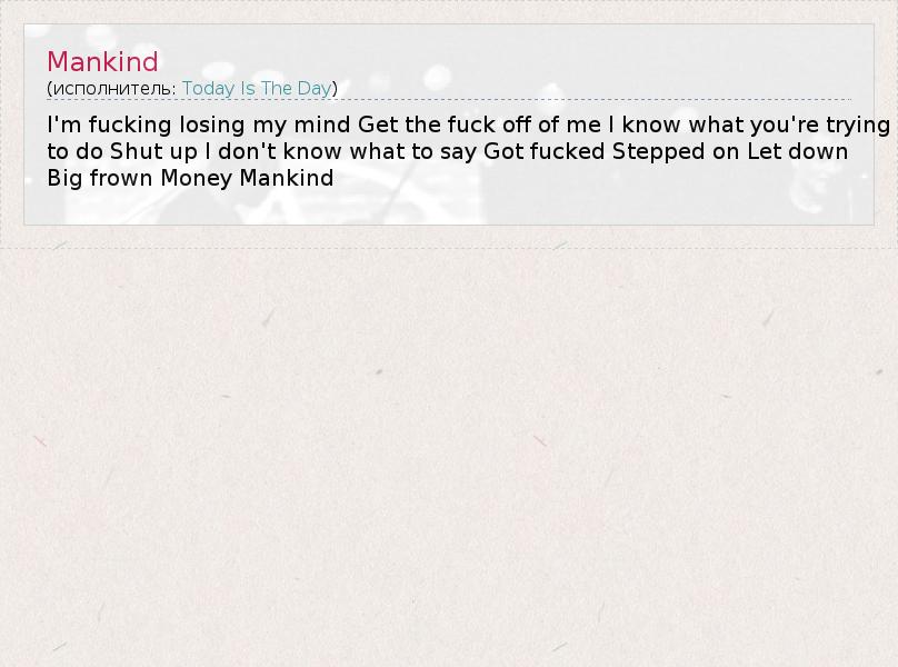to do Shut up I don't know what to say Got fucked Stepped on Let down