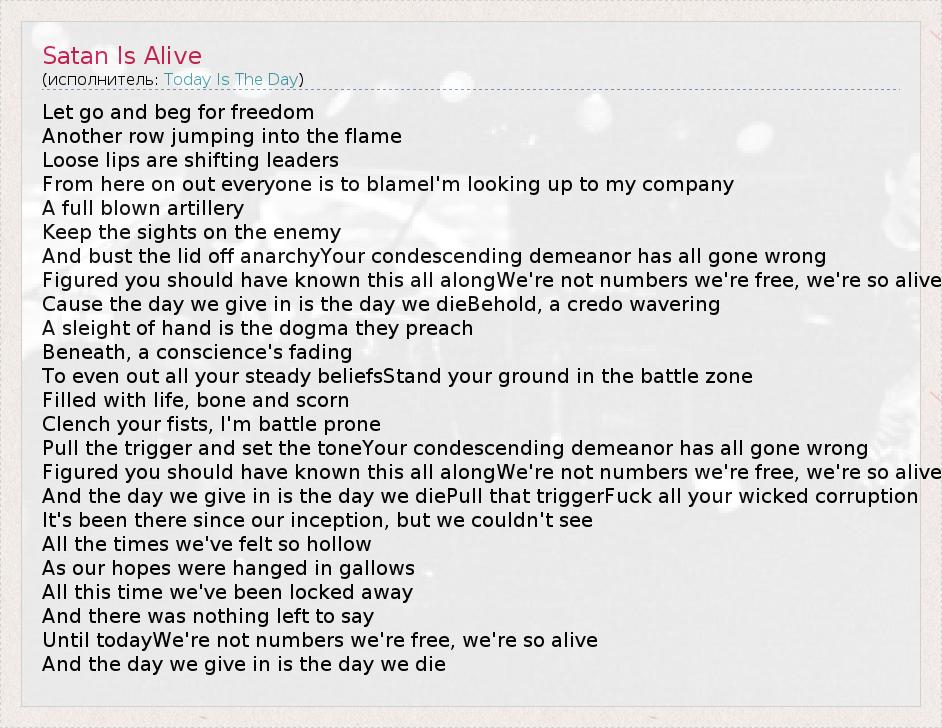 А как ты думаешь, о чем песня "Satan Is Alive" ?