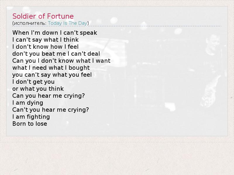 А как ты думаешь, о чем песня "Soldier of Fortune" ?
