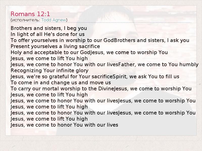 А как ты думаешь, о чем песня "Romans 12:1" ?