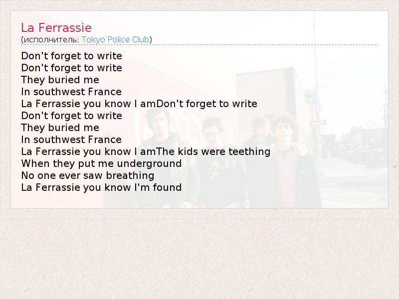 А как ты думаешь, о чем песня "La Ferrassie" ?