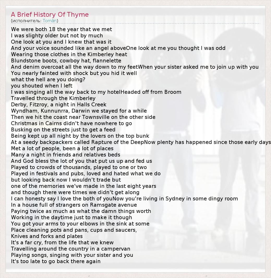 А как ты думаешь, о чем песня "A Brief History Of Thyme" ?
