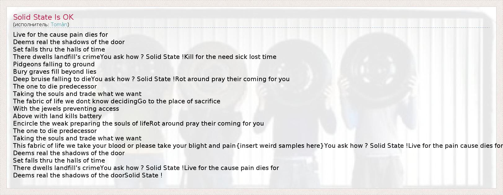 А как ты думаешь, о чем песня "Solid State Is OK" ?
