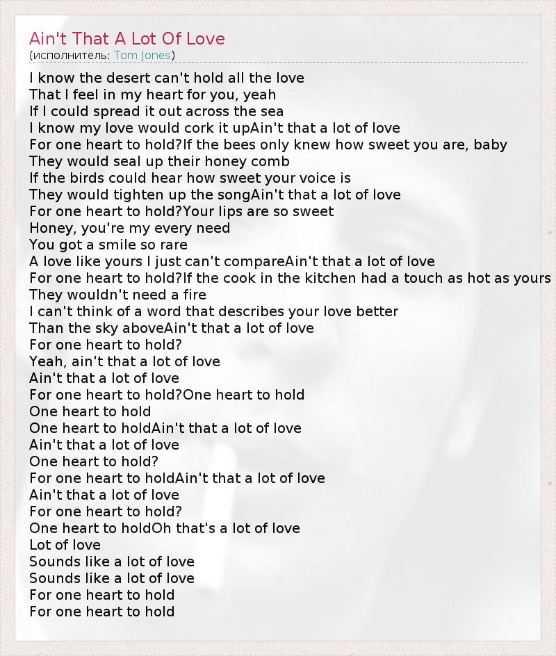 ГлавнаяИсполнителиTom JonesAin't That A Lot Of Love