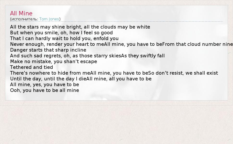 А как ты думаешь, о чем песня "All Mine" ?