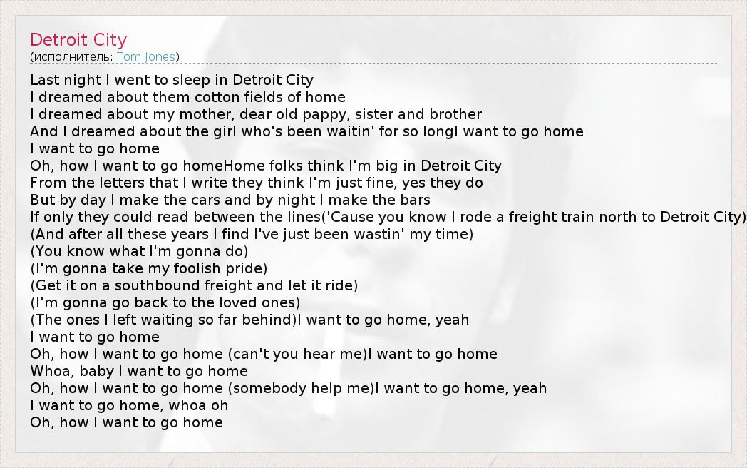 Oh, how I want to go homeHome folks think I'm big in Detroit City