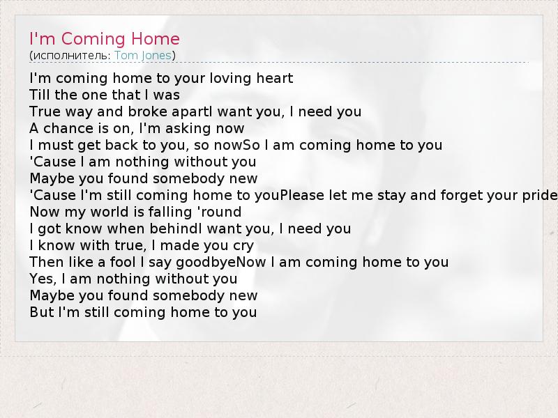 А как ты думаешь, о чем песня "I'm Coming Home" ?