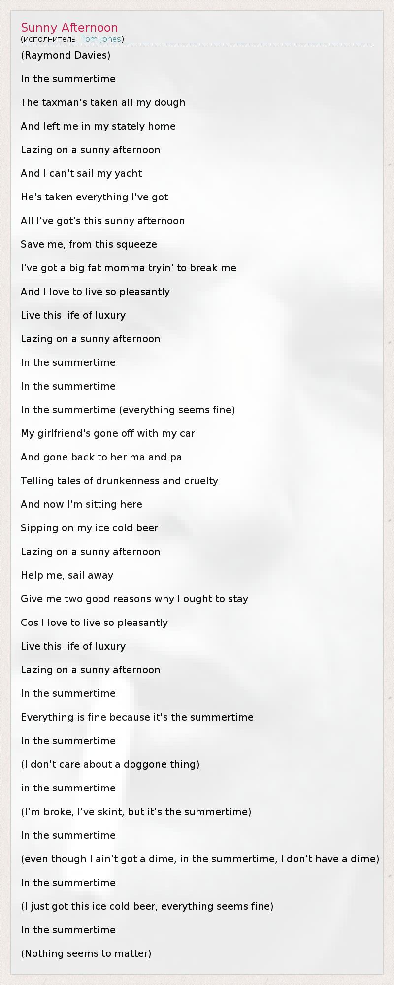 А как ты думаешь, о чем песня "Sunny Afternoon" ?