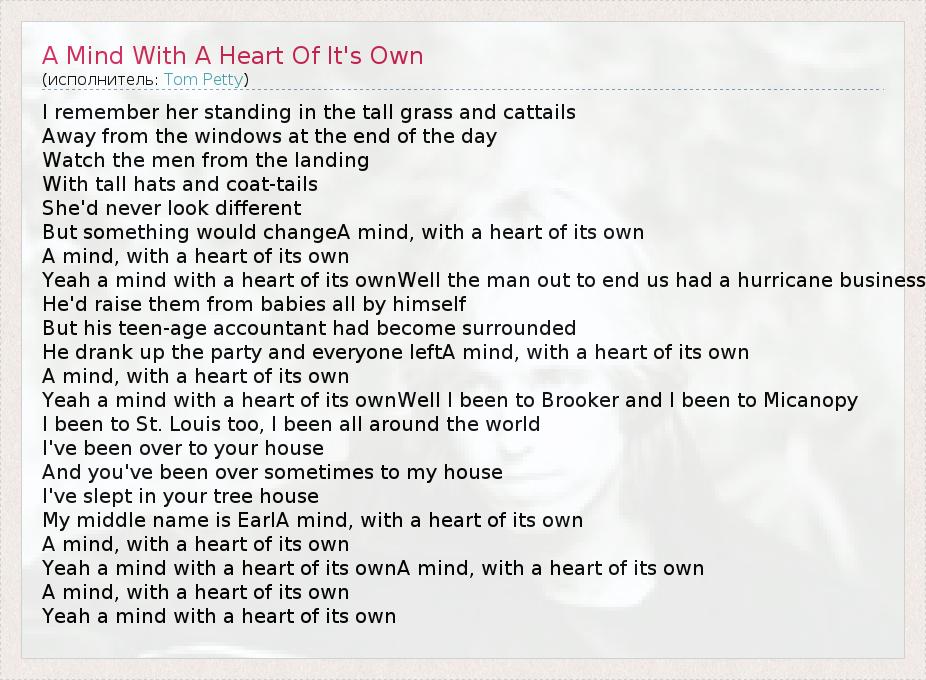 ГлавнаяИсполнителиTom PettyA Mind With A Heart Of It's Own