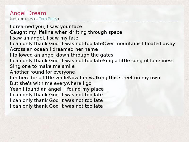 А как ты думаешь, о чем песня "Angel Dream" ?